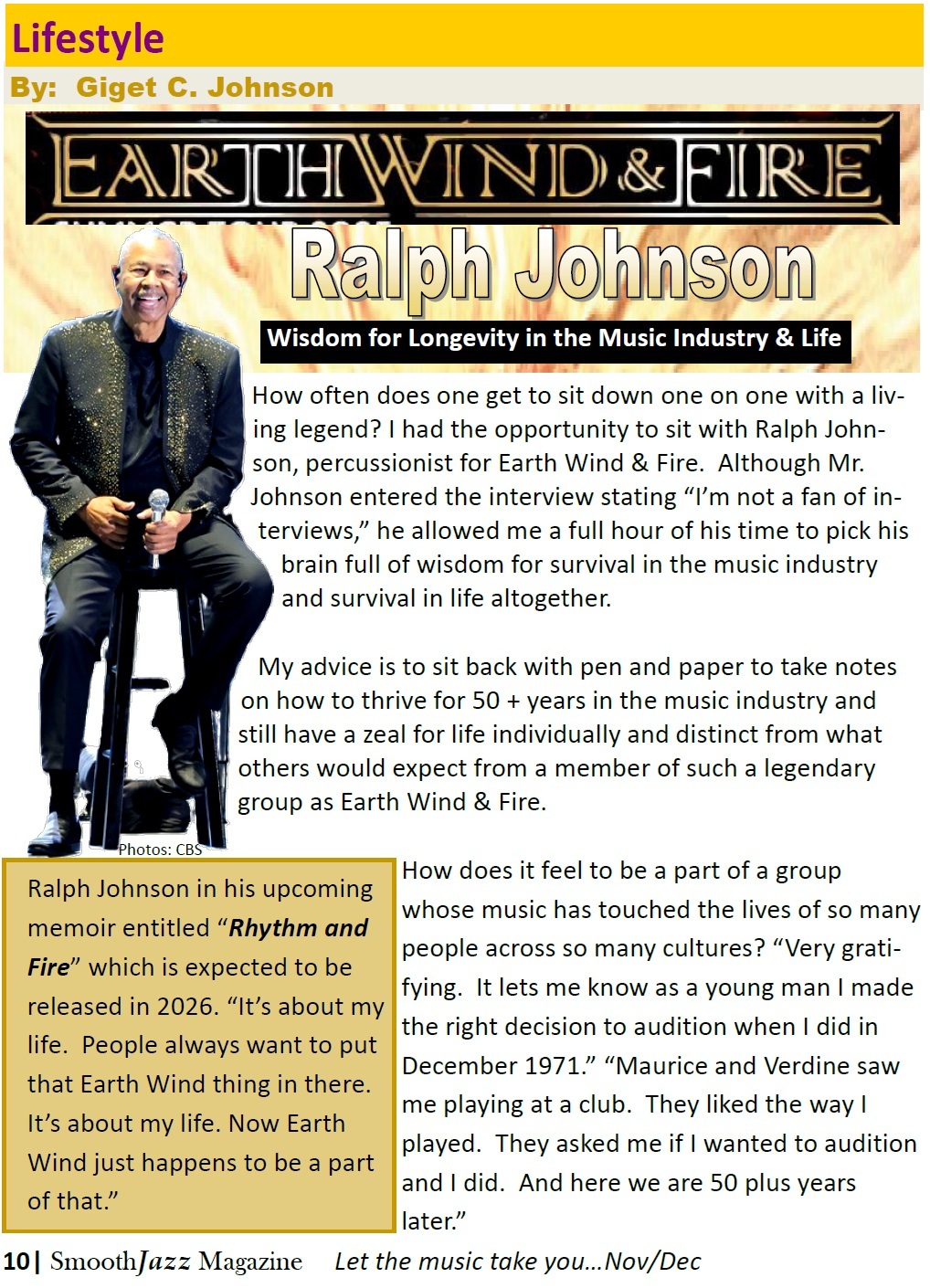 How often does one get to sit down one on one with a living legend? I had the opportunity to sit with Ralph Johnson, percussionist for Earth Wind & Fire. Although Mr. Johnson entered the interview stating “I’m not a fan of interviews,” he allowed me a full hour of his time to pick his brain full of wisdom for survival in the music industry and survival in life altogether. You’ll be able to read all about the life of Ralph Johnson in his upcoming memoir entitled “Rhythm and Fire” which is expected to be released in 2026. “It’s about my life. People always want to put that Earth Wind thing in there. It’s about my life. Now Earth Wind just happens to be a part of that.” In the meantime, you’re stuck with this article. My advice is to sit back with pen and paper to take notes on how to thrive for 50 + years in the music industry and still have a zeal for life individually and distinct from what others would expect from a member of such a legendary group as Earth Wind & Fire.