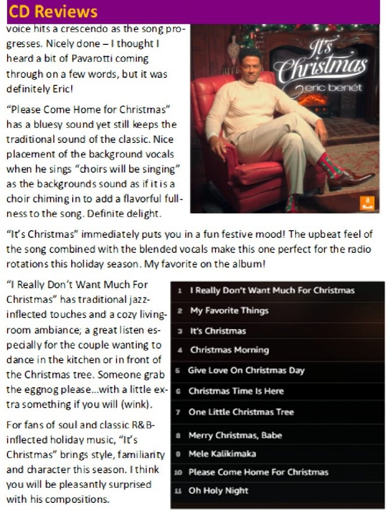 Benét’s smooth, soulful R&B vocals add warmth and a sense of familiarity to both the timeless classics and his own original tracks. For longtime fans, the album feels like a seamless continuation of his signature sound rather than a departure from it.